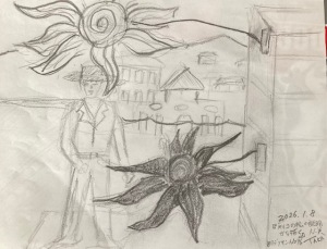 日デッサンNo96 大人美 キリコの「Rising sun on the plaza」のデフォルメ 鉛筆